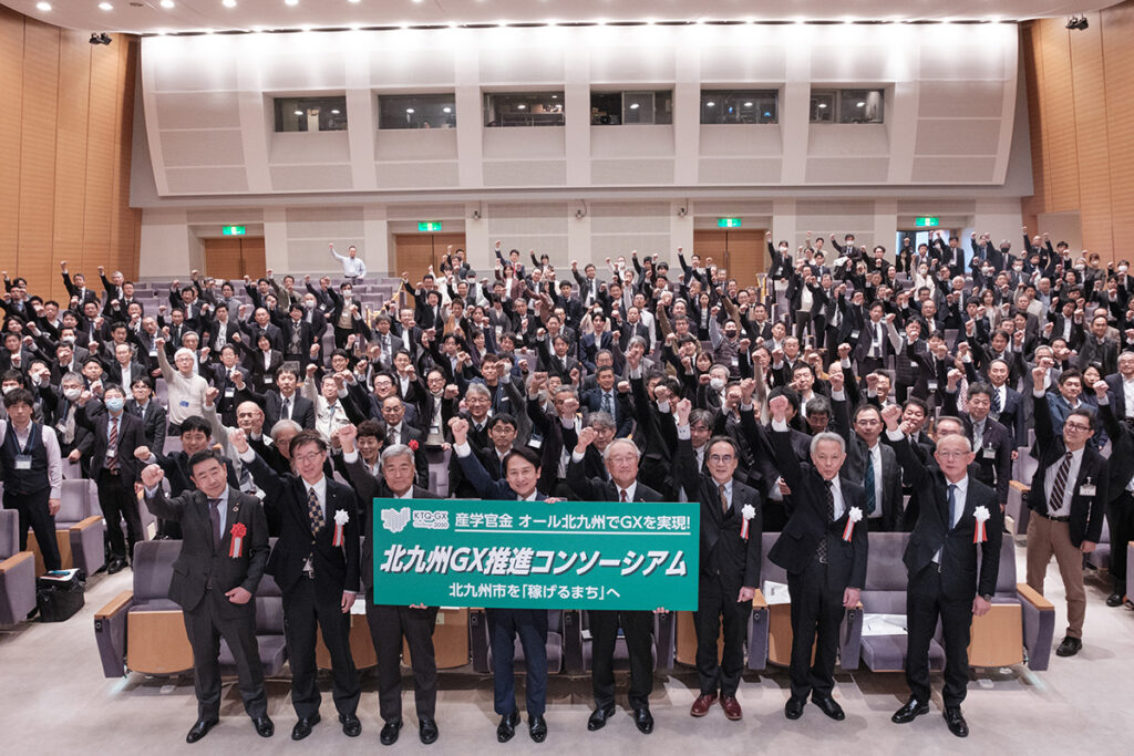 このような環境先進都市でもある同市は、政府がカーボンニュートラル(実質的な温室効果ガスを0とすること)を 2050 年までに実現することを掲げ、今後 10 年間で 150 兆円の GX投資を見込む中、2023 年(令和 5 年)に全国で初となる産学官金連携の「北九州GX推進コンソーシアム」を設立しました。